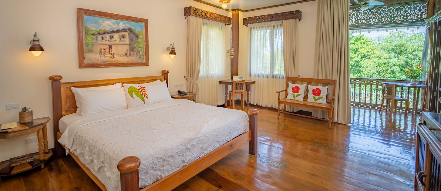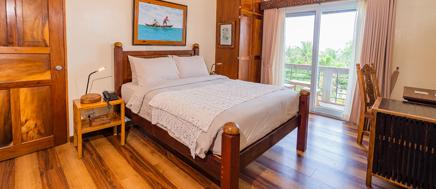 A tranquil retreat showcasing local artistry and warm wood craftsmanship, this room offers a serene and refined atmosphere. With its private balcony and understated elegance, it provides the perfect space to unwind, relax, and enjoy peaceful moments in comfort.