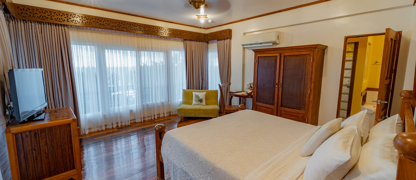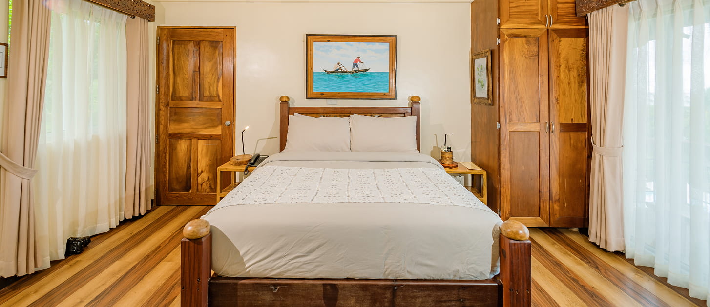 Light-filled and thoughtfully crafted, the Tamsi Room features a comfortable king bed, wide windows that welcome natural light, and artisanal wood details that highlight local craftsmanship. Blending elegance with warmth, the space offers a serene and inviting atmosphere—perfect for guests seeking comfort, style, and a touch of cultural charm during their stay.