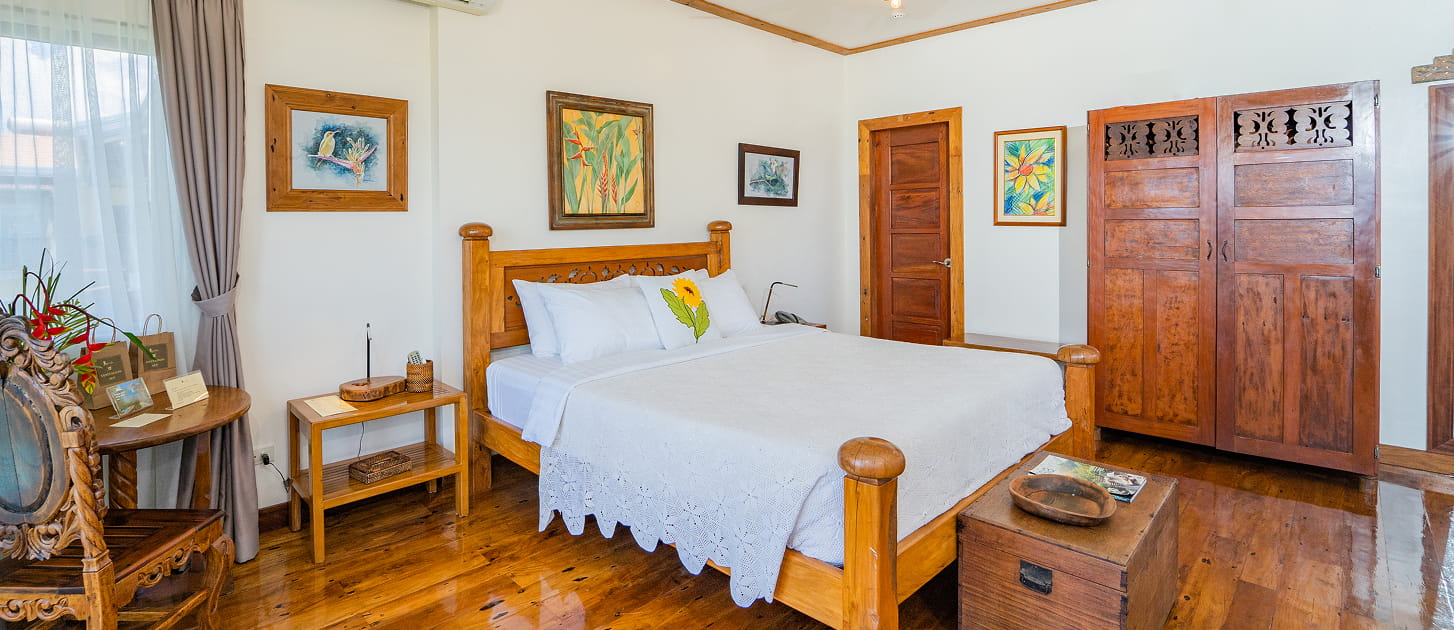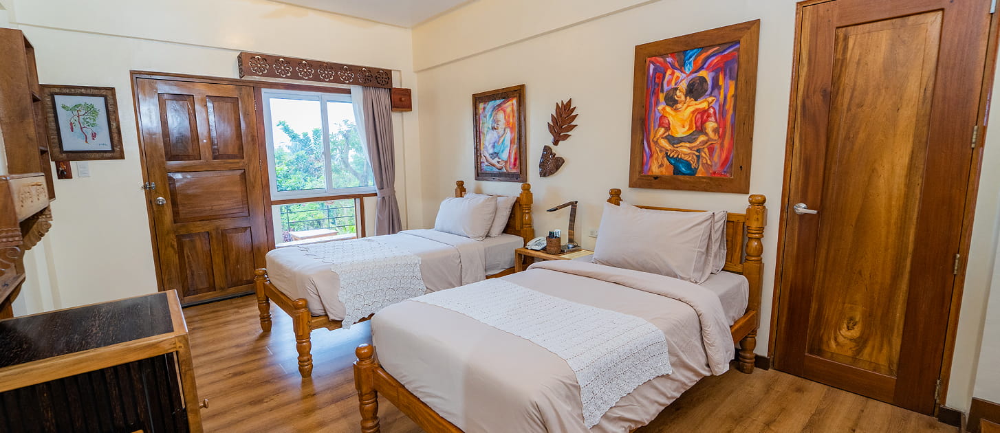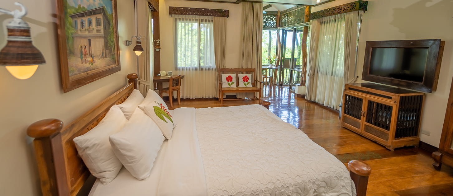 Light-filled and thoughtfully crafted, the Tamsi Room features a comfortable king bed, wide windows that welcome natural light, and artisanal wood details that highlight local craftsmanship. Blending elegance with warmth, the space offers a serene and inviting atmosphere—perfect for guests seeking comfort, style, and a touch of cultural charm during their stay.