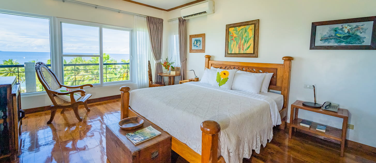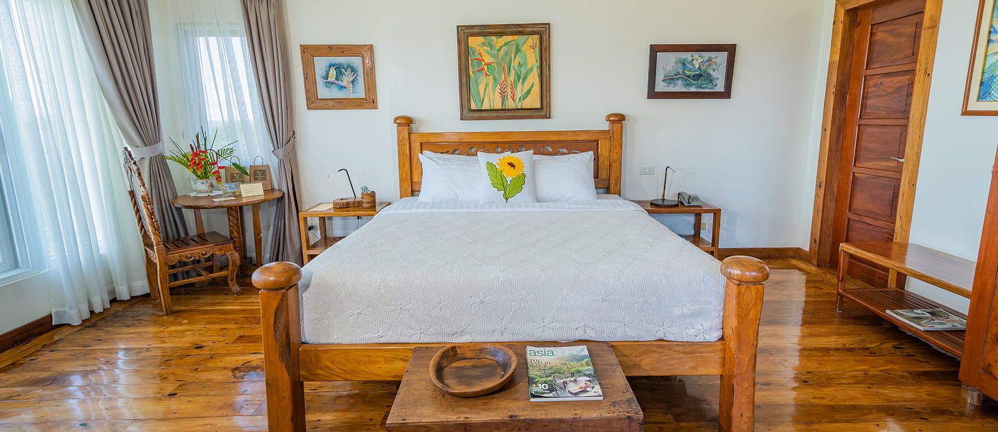 Relax in this inviting room featuring a plush king bed, handcrafted décor, and a private balcony overlooking the lush gardens. Thoughtfully designed to blend comfort with natural charm, the space offers a peaceful ambiance ideal for unwinding. Perfect for nature lovers, it provides a refreshing retreat where you can enjoy tranquility and comfort throughout your stay.